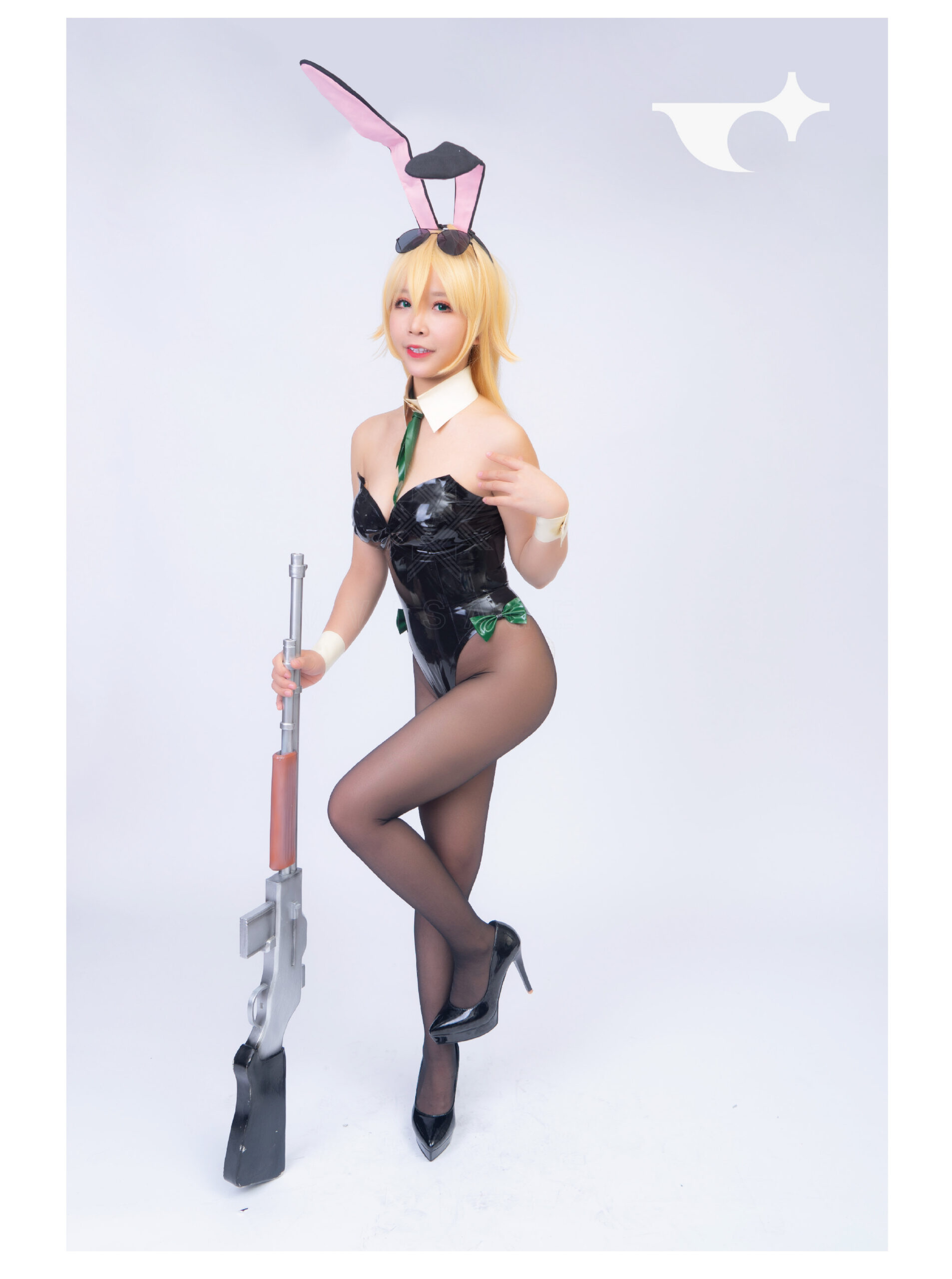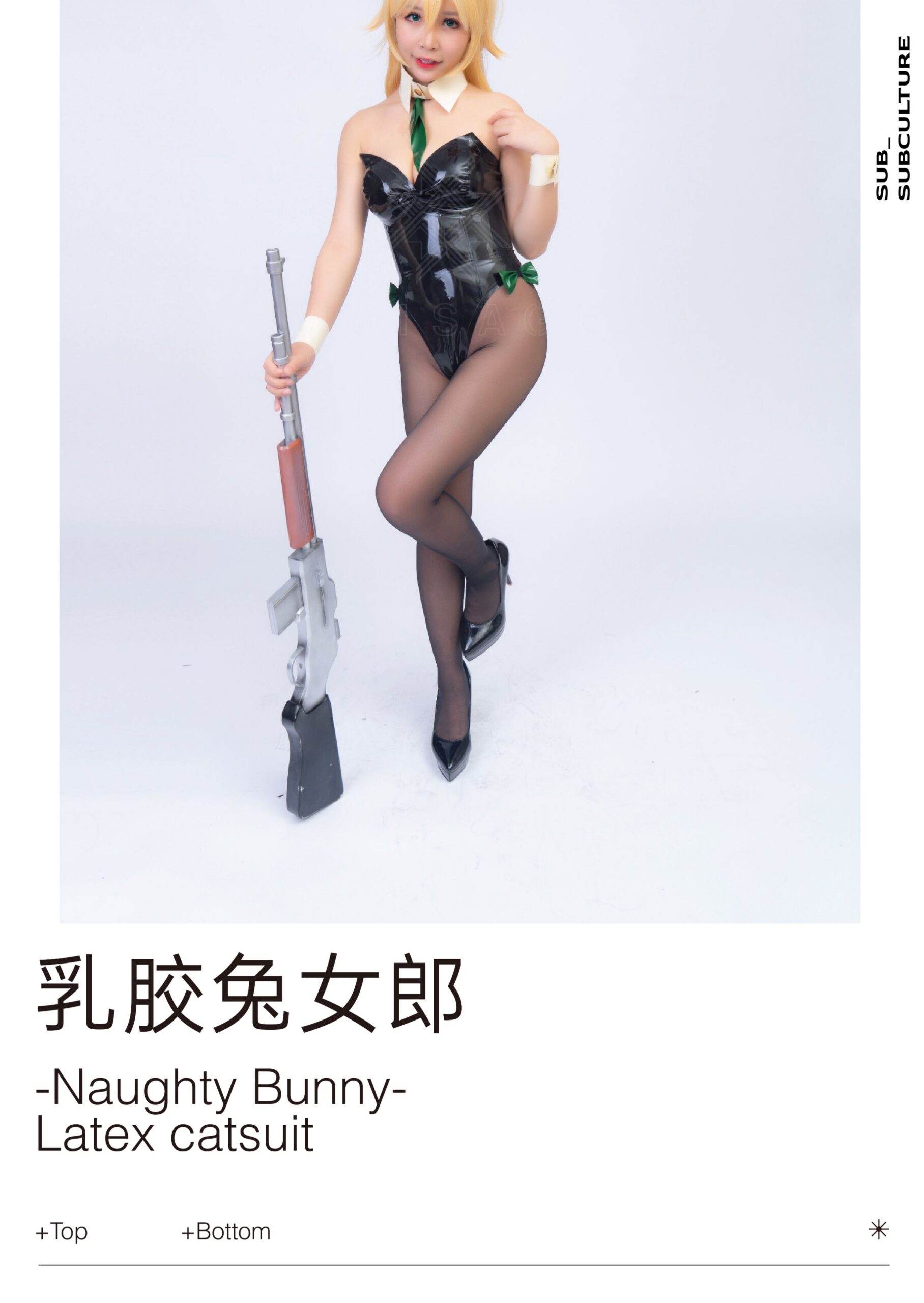 A luxurious latex bunny outfit featuring sculpted curves and playful design details. Perfect for performances or private couture wear.