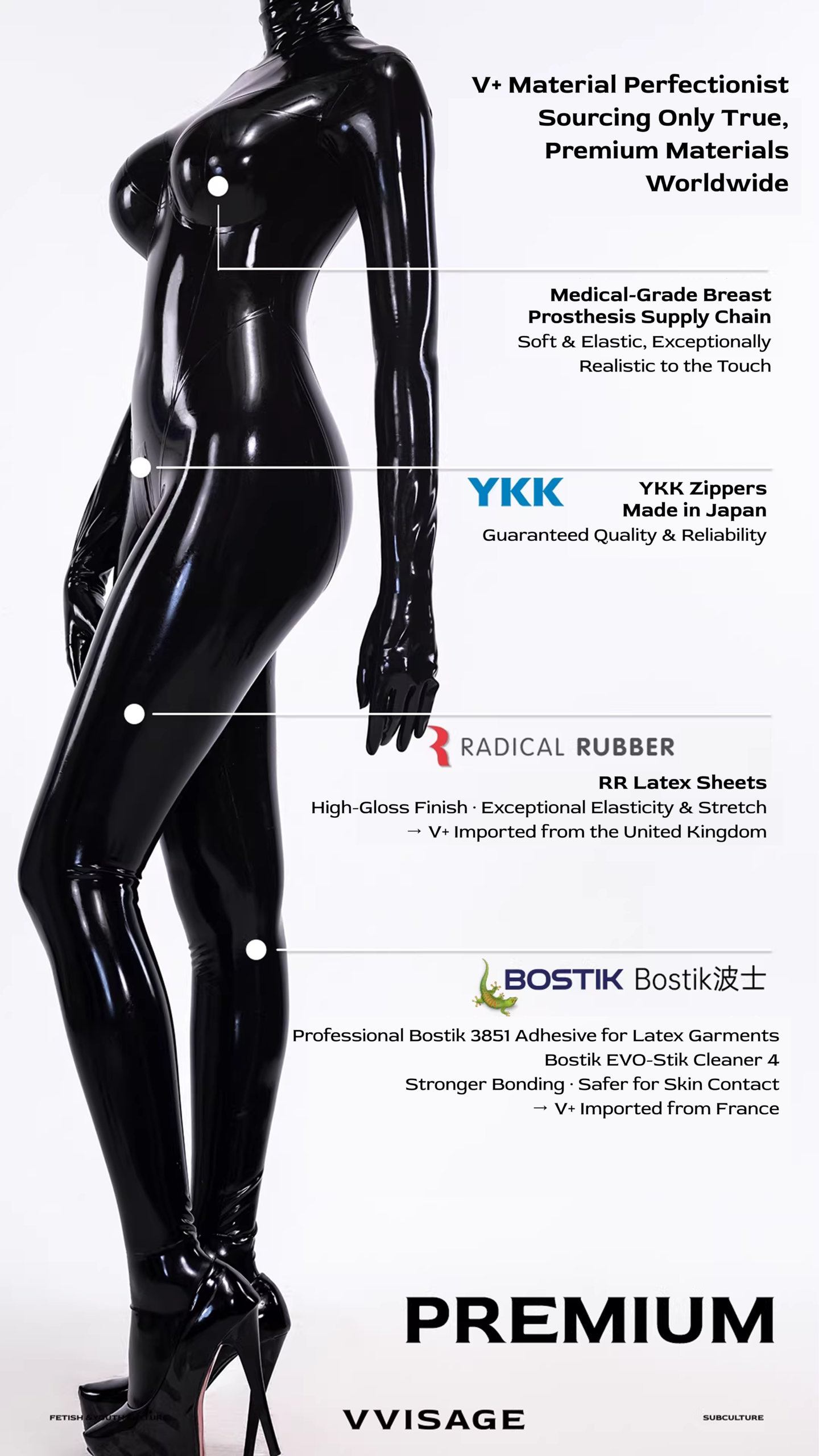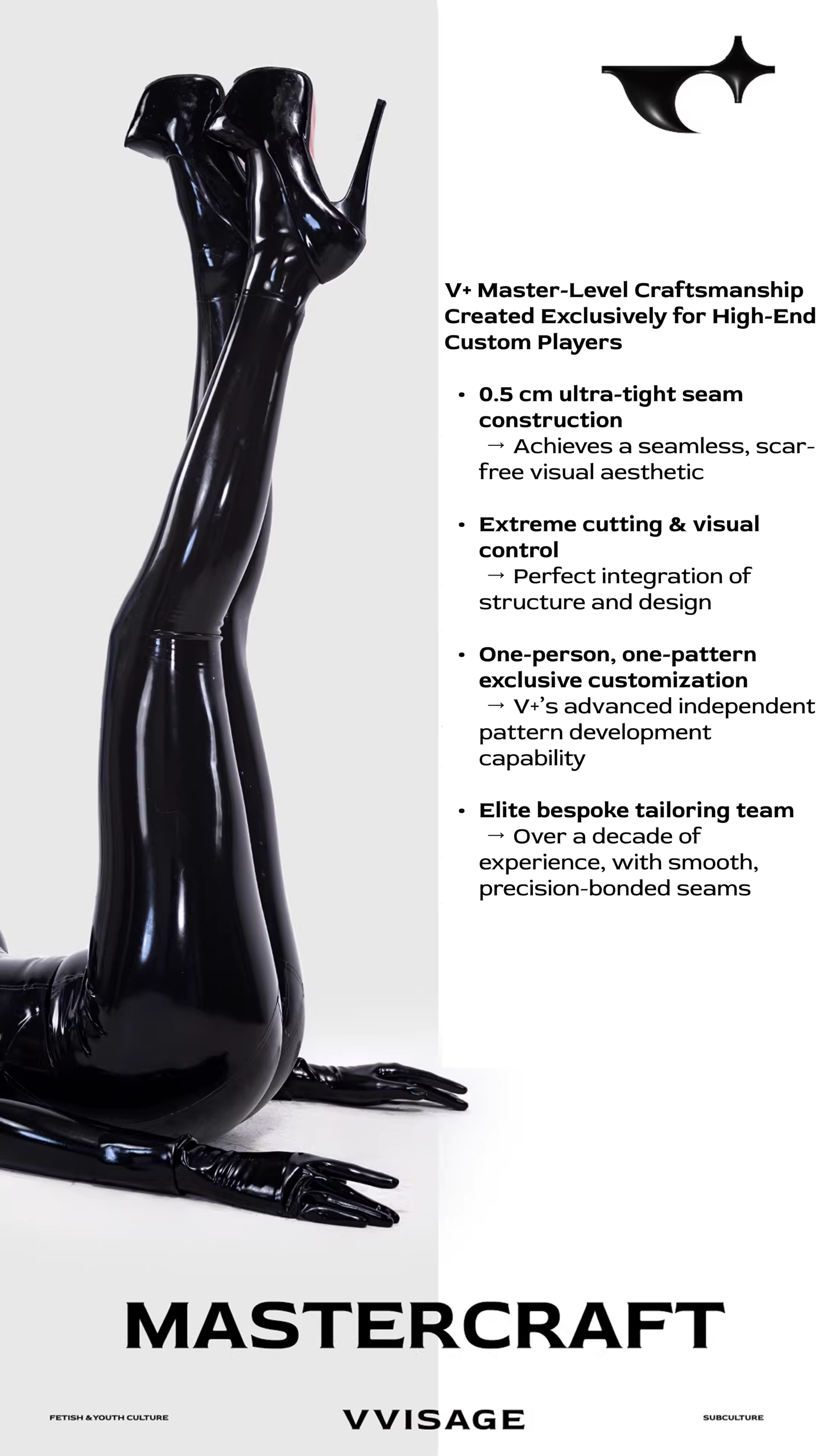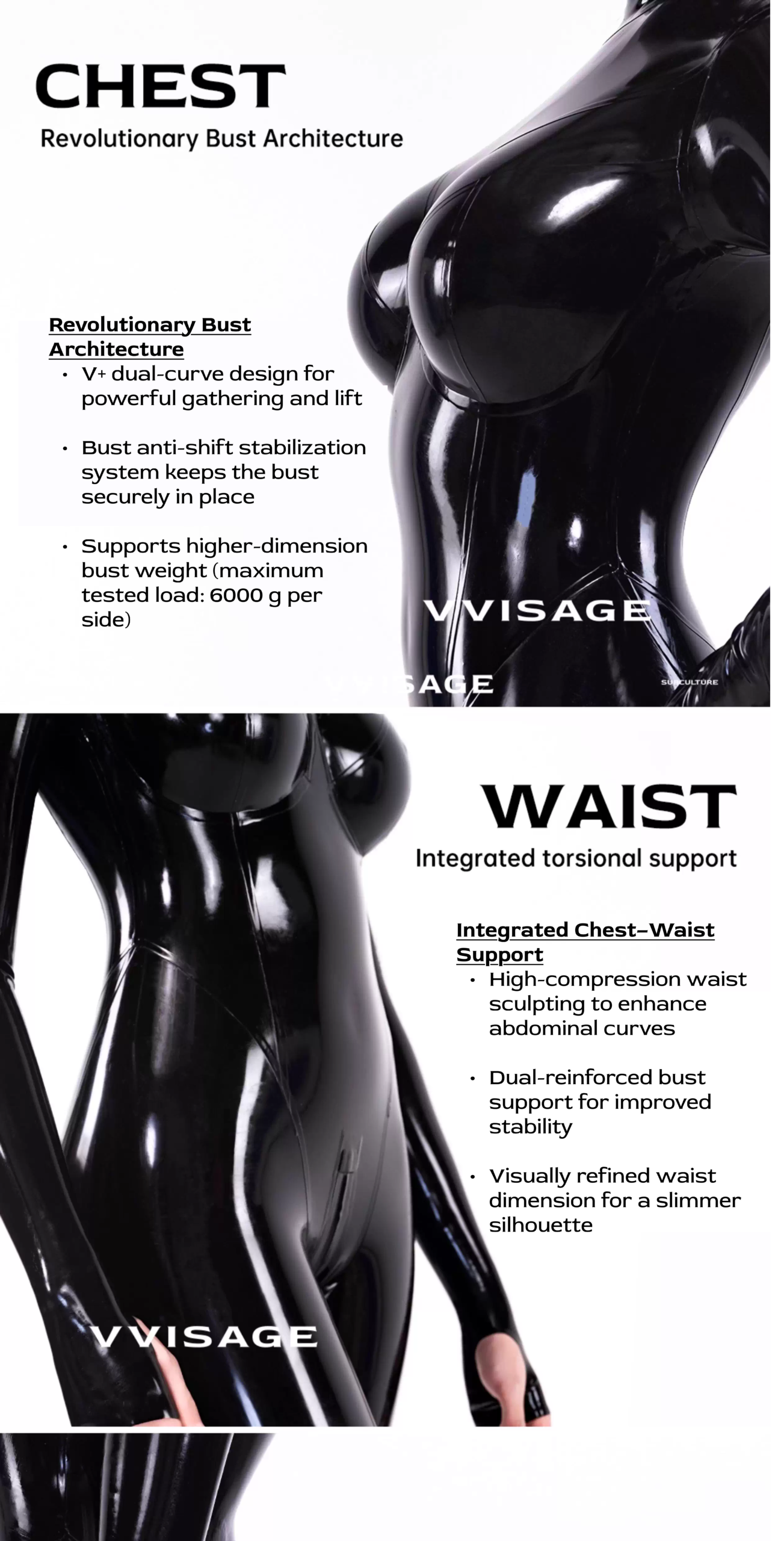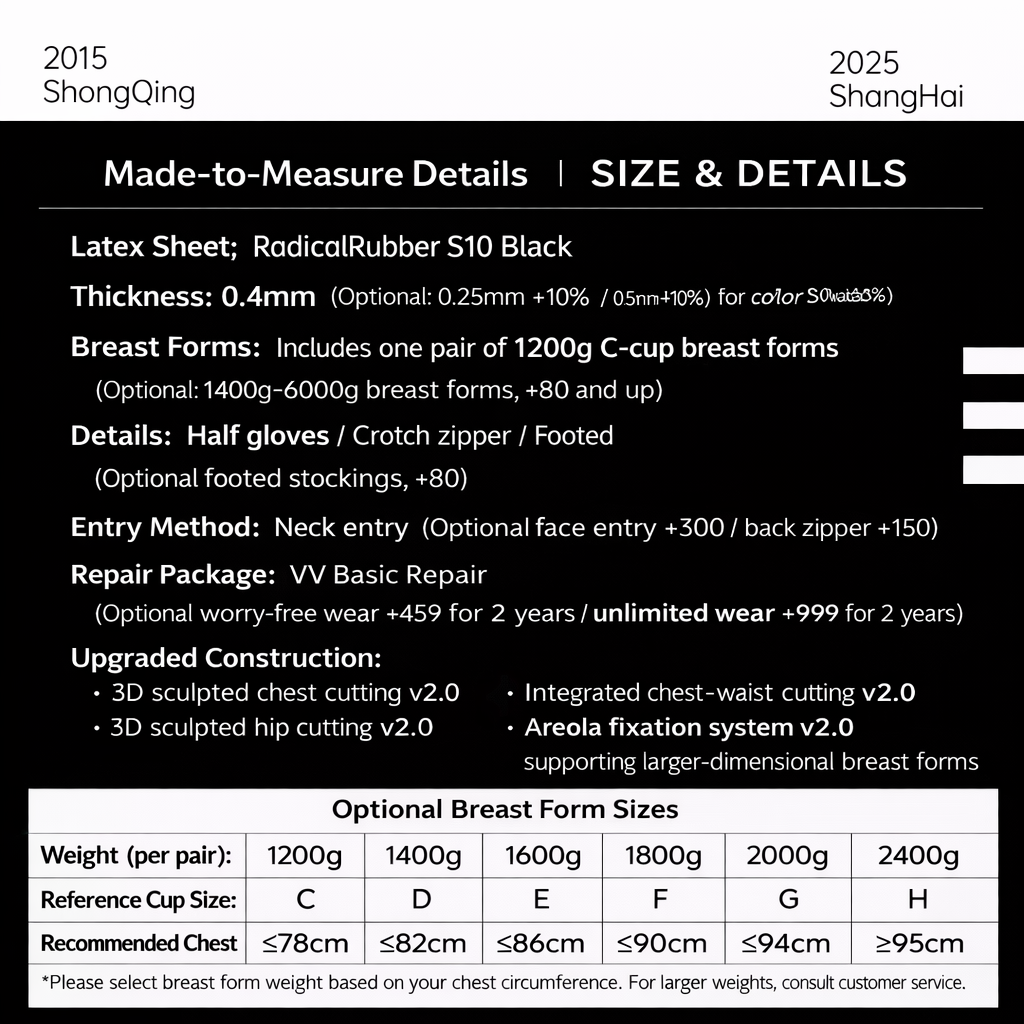 A next-generation full-body latex catsuit featuring built-in breast forms for enhanced curves. Tailored to your exact measurements for a flawless, body-hugging fit. Crafted from top-grade latex with an exquisite gloss finish.
