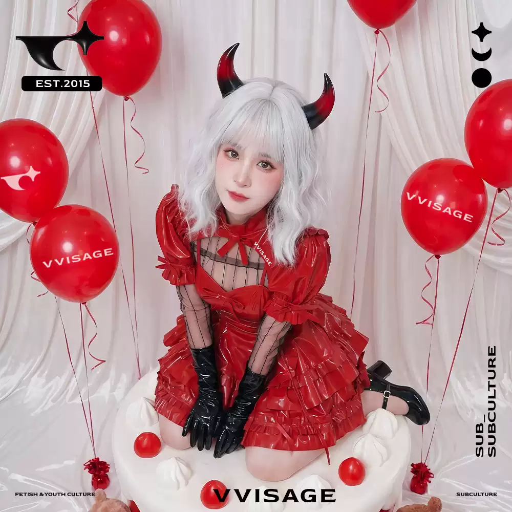 VVISAGE | Red Velvet Cake Latex Dress – Custom-Made Lolita Maid Style